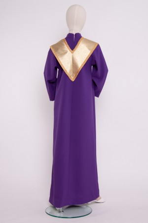 Mitglieder einer Musikgruppe oder eines Kirchenchors brauchen ein Gewand, das sie bei feierlichen Anlässen tragen können und das ihre Musik ästhetisch untermalt. Unsere Produkte wurden mit Rücksicht auf ihre Bedürfnisse entwickelt. Dieses Kleidungsstück besteht aus zwei Teilen - einer leichten und gemütlichen Albe mit langen Ärmeln und einem beeindruckenden Kragen. Das Outfit des Chores T3/fio besteht aus einer violett Albe und einem Kragen, der mit einem goldenen Band und einem Kreuz verziert ist. Der Stoff, aus dem dieses Set hergestellt wird, zeichnet sich durch seine Leichtigkeit, Luftigkeit und Bequemlichkeit aus.