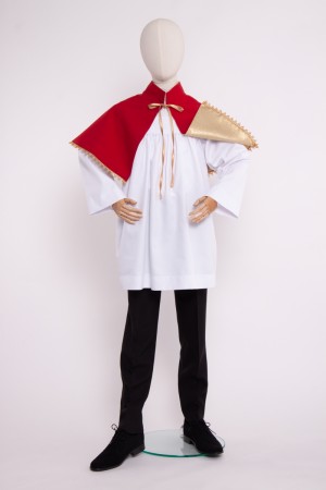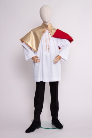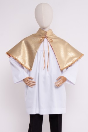 Die doppelseitige Pelerine kann in verschiedenen Situationen während der liturgischen Zeit benutzt werden. Die Pelerine für Ministranten oder Lektoren kann auf beiden Seiten benutzt werden, die jeweils in kontrastierenden Farben erhältlich sind. Sie besteht aus einem Stoff, der perfekt für den alltäglichen Gebrauch geeignet ist: leicht, knitterarm, leicht zu bügeln und schmutzabweisend. Aus Gabardine und Brokatstoff (100% Polyester). Bei der Wahl der Größe/Länge sollte die Gesamthöhe berücksichtigt werden.