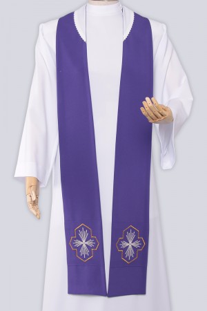 Wunderschönes violett Messgewand mit einem gestickten liturgischen Symbol. Die Farbe des Messgewandes passt wunderbar zu den Stickereien auf der Vorder- und Rückseite. Das Messgewand in ist ideal für den priesterlichen Dienst während der Messe oder anderer kirchlicher Zeremonien.