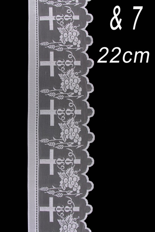 Die von uns angebotenen Produkte werden in Polen als urheberrechtlich geschützte Entwürfe hergestellt, die in unserem Atelier entstanden sind und dem Urheberrecht unterliegen. Unser Ziel ist es, einzigartige Motive mit schönen liturgischen Symbolen zu schaffen, die zu einer bezaubernden Dekoration eines Chorrocks, einer Albe oder einer Altardecke gehören. Wir bieten Spitze mit einer Höhe von 22 cm an. Die maximale Länge, die wir anbieten können, beträgt 15 Meter.