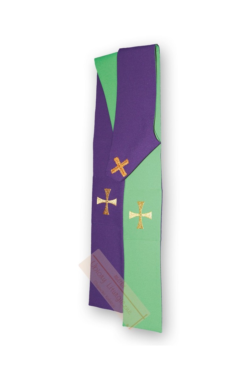 Die Priesterstola ist ein wichtiges Element der geistlichen Kleidung und kann in zwei von der liturgischen Periode abhängigen Farben genäht werden. Die hier angebotene Stola zeichnet sich durch eine elegante Dekoration in Form von liturgischen Symbolen aus, die in der römisch-katholischen Kirche verwendet werden. Die doppelseitige Stola ist ein ideelles Produkt für den Priester, der auf der Suche nach hochwertigen Kleidungsstücken ist, die er für verschiedene Anlässe verwenden kann.