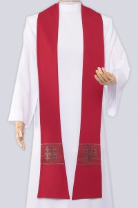 Jede liturgische Periode in der Kirche ist durch entsprechende Farben gekennzeichnet, die in der Kleidung der Priester sichtbar sind. Die rote Stola wird am Passionssonntag, am Karfreitag oder Pfingstsonntag angezogen. Wir bieten außergewöhnlich elegante Insignien mit Dekorationen in Form von liturgischen Motiven an. Sie können zwischen zwei Längen wählen - 125 und 145 cm.