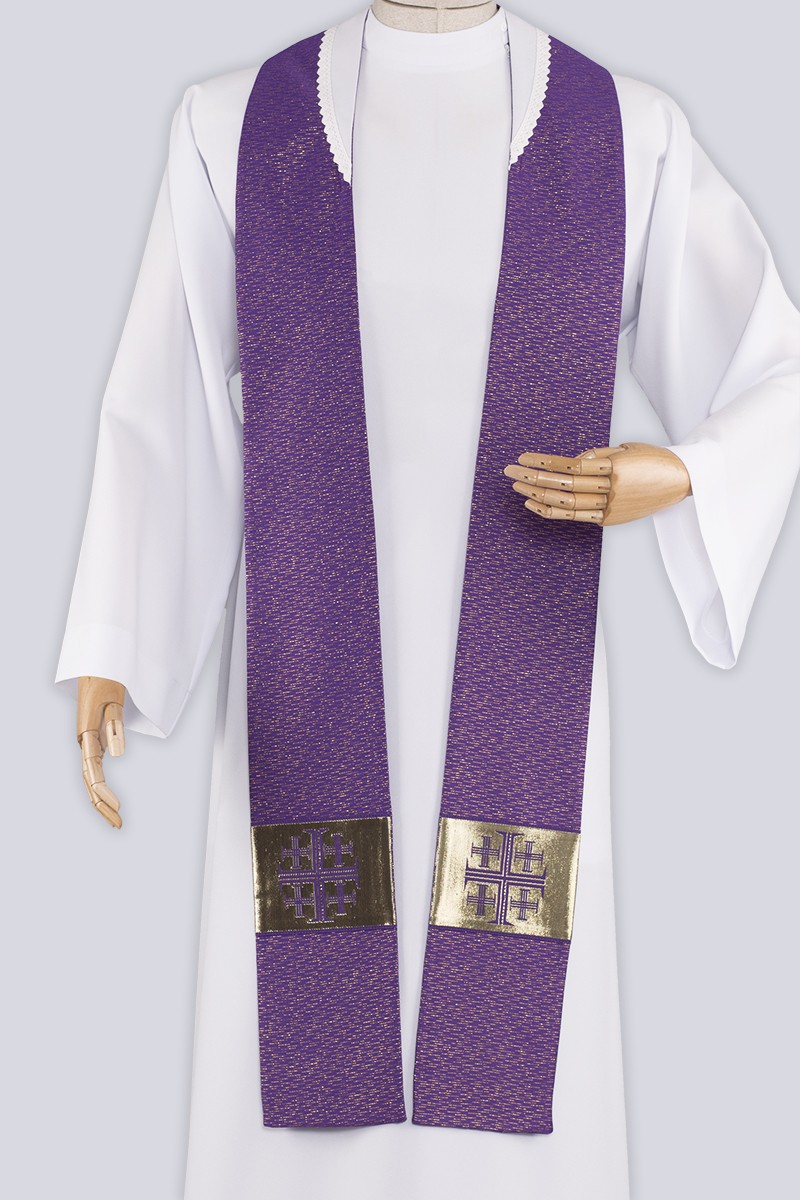 Diese Stole eignet sich ideal für den priesterlichen Dienst in der Advents- und Fastenzeit und für Totenmessen.